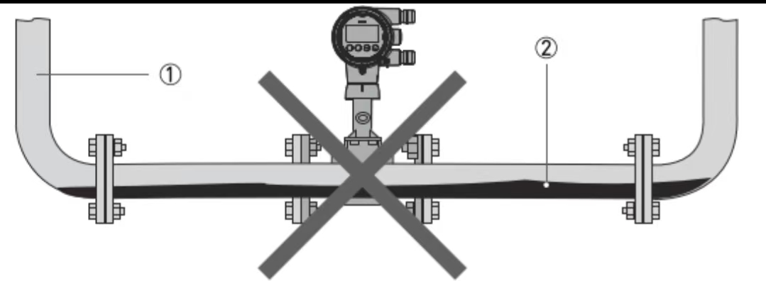 2. Flowmåleren skal installeres på et sted, der sikrer, at røret er helt fyldt for at opnå normal måling.